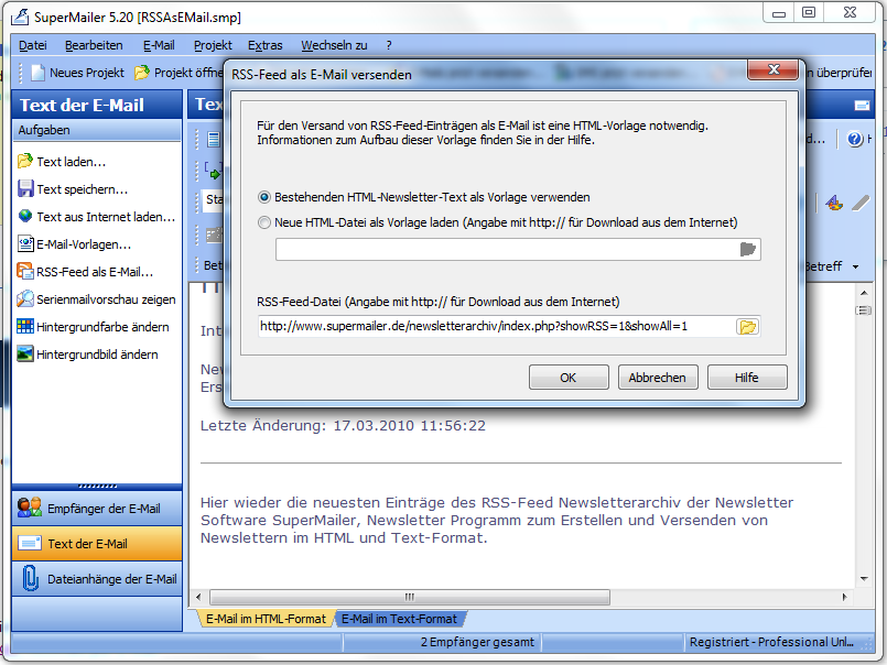 der Hilfe entnehmen) kann SuperMailer gestartet